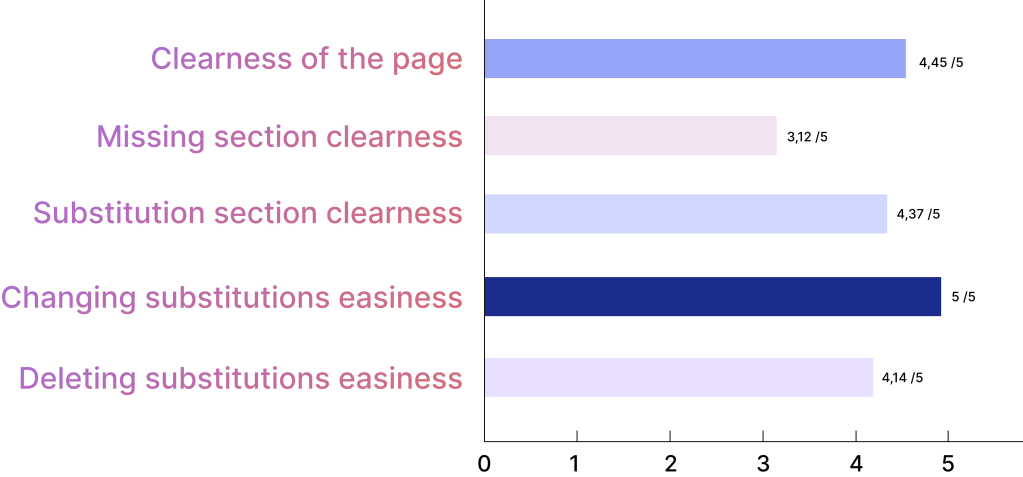 - Test if users know how to change a suggested substitution.