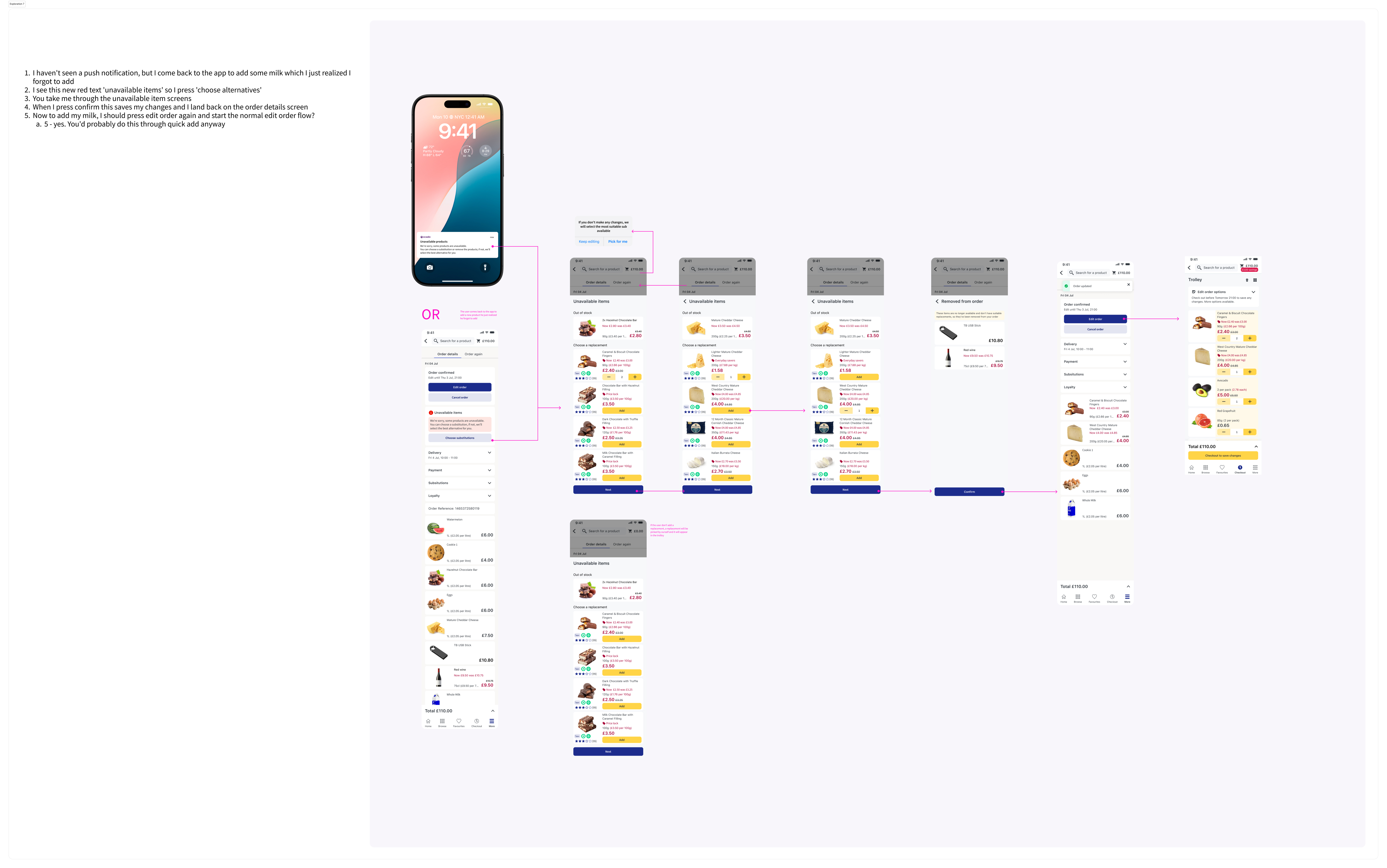 In the existing experience, customers were only informed about substitutions at the point of dispatch, after their order had already been picked. At that stage, customers had no opportunity to influence the outcome, even though internal research consistently showed that lack of control over substitutions was one of the biggest pain points in online grocery.