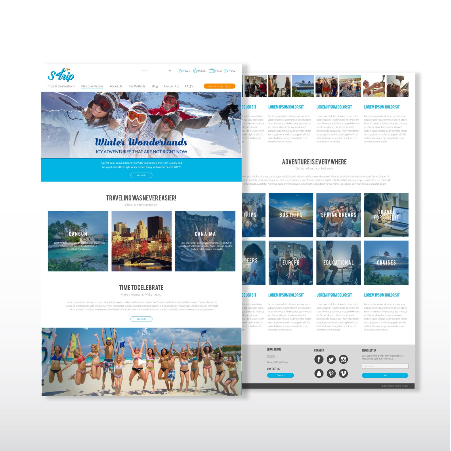 Strip is a vacation plan agency for teens. For this proposal I redesigned their logo and created a vibrant and colorful onepage site.